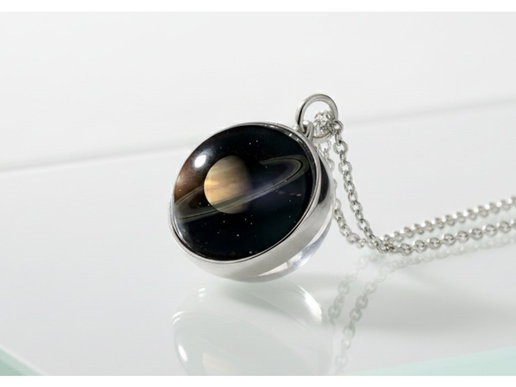 Stříbrný náhrdelník s přívěskem planety SATURN ve znamení Kozoroha ♑.